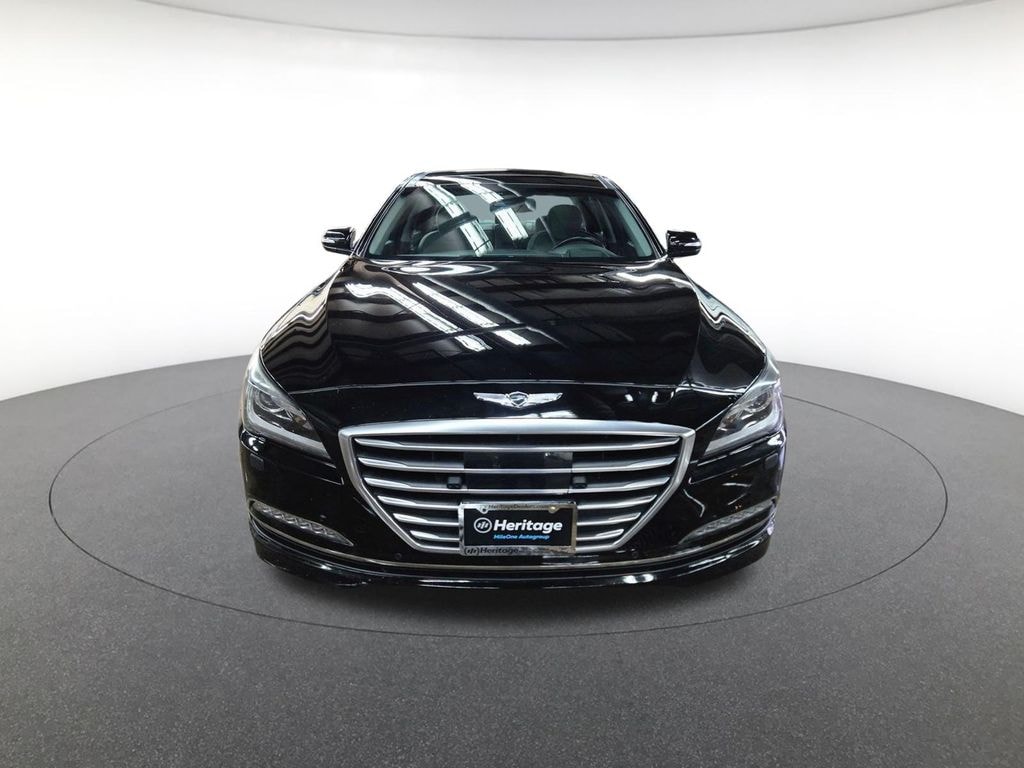 Option Group 02, Option Group 03, Premium Package 02 (7" Color LCD Multi-Information Display, Front & Rear Parking Sensors, LED Fog Lamps, Power Rear Window Sunshade, Power Tilt-and-Slide Panoramic Sunroof, and Rearview Camera w/Parking Guidelines), Ultimate Package 03 (Dual Mode HVAC and CO2 Sensor, Full-Color Heads-Up Display, Genuine Aluminum Interior Accents, Genuine Matte Finish Wood Trim, Power Heated & Cooled Front Bucket Seats, Power Trunk Lid, Premium Leather Seating Surfaces, and Radio: AM/FM/SiriusXM/CD/HD/DVD/MP3 Audio System), 30 day Warranty, 12-way Power Heated & Vented Front Bucket Seats, 12-Way Power Heated Front Bucket Seats, 4-Wheel Disc Brakes, 7 Speakers, ABS brakes, Air Conditioning, Alloy wheels, AM/FM radio: SiriusXM, Android Auto & Apple CarPlay, Anti-whiplash front head restraints, Auto High-beam Headlights, Auto tilt-away steering wheel, Auto-dimming door mirrors, Auto-dimming Rear-View mirror, Automatic temperature control, Bodyside moldings, Brake assist, Bumpers: body-color, CD player, Compass, Delay-off headlights, Driver door bin, Driver vanity mirror, Dual front impact airbags, Dual front side impact airbags, Electronic Stability Control, Emergency communication system: Genesis Connected Services, Exterior Parking Camera Rear, Four wheel independent suspension, Front anti-roll bar, Front Bucket Seats, Front Center Armrest w/Storage, Front dual zone A/C, Front reading lights, Fully automatic headlights, Garage door transmitter: HomeLink, Heated door mirrors, Heated front seats, High intensity discharge headlights: Bi-Xenon, Illuminated entry, Knee airbag, Leather Seating Surfaces, Leather steering wheel, Low tire pressure warning, Memory seat, Mud Guards, Navigation System, Occupant sensing airbag, Outside temperature display, Overhead airbag, Overhead console, Panic alarm, Passenger door bin, Passenger vanity mirror, Power door mirrors, Power driver seat, Power passenger seat, Power steering, Power windows, Radio: AM/FM/HD/SiriusXM/CD/MP3 Audio System, Radio: AM/FM/SiriusXM/HD/CD/MP3 Audio System, Rain sensing wipers, Rear anti-roll bar, Rear reading lights, Rear seat center armrest, Rear side impact airbag, Rear window defroster, Remote keyless entry, Reversible Cargo Tray, Security system, Speed control, Speed-sensing steering, Speed-Sensitive Wipers, Steering wheel memory, Steering wheel mounted audio controls, Tachometer, Telescoping steering wheel, Tilt steering wheel, Traction control, Trip computer, Turn signal indicator mirrors, Variably intermittent wipers, and Wheels: 18 x 8.0J Alloy.