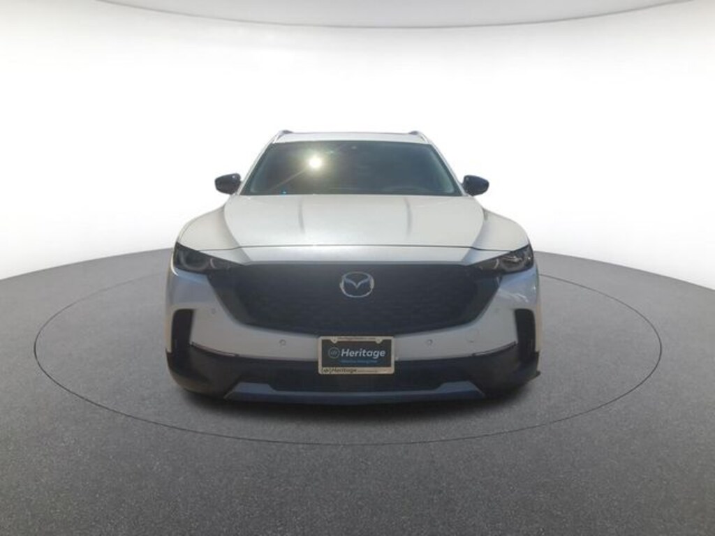 Weather Package (Cargo Liner w/Seatback Protection), 12 Speakers, 20" x 8J Aluminum Alloy Wheels, 3.841 Axle Ratio, 4-Wheel Disc Brakes, ABS brakes, Air Conditioning, Alloy wheels, AM/FM radio: SiriusXM, AppLink/Apple CarPlay and Android Auto, Auto High-beam Headlights, Auto-dimming door mirrors, Auto-dimming Rear-View mirror, Automatic temperature control, Brake assist, Bumpers: body-color, Compass, Delay-off headlights, Driver door bin, Driver vanity mirror, Dual front impact airbags, Dual front side impact airbags, Electronic Stability Control, Emergency communication system: MAZDA CONNECT, Front anti-roll bar, Front Bucket Seats, Front Center Armrest w/Storage, Front dual zone A/C, Front reading lights, Front wheel independent suspension, Fully automatic headlights, Garage door transmitter: HomeLink, Heads-Up Display, Heated & Ventilated Front Bucket Seats, Heated door mirrors, Heated front seats, Heated rear seats, Heated steering wheel, Illuminated entry, Knee airbag, Leather Seat Trim, Leather Shift Knob, Leather steering wheel, Low tire pressure warning, Memory seat, Navigation system: MAZDA CONNECT, Occupant sensing airbag, Outside temperature display, Overhead airbag, Overhead console, Panic alarm, Passenger door bin, Passenger vanity mirror, Power door mirrors, Power driver seat, Power Liftgate, Power moonroof, Power passenger seat, Power steering, Power windows, Radio data system, Radio: AM/FM/HD Audio System, Rain sensing wipers, Rear seat center armrest, Rear window defroster, Rear window wiper, Remote keyless entry, Retractable Cargo Cover, Speed control, Speed-sensing steering, Split folding rear seat, Spoiler, Steering wheel mounted audio controls, Tachometer, Telescoping steering wheel, Tilt steering wheel, Traction control, Trip computer, Turn signal indicator mirrors, Variably intermittent wipers, Ventilated front seats, and Wind Chill Pearl Paint Charge.