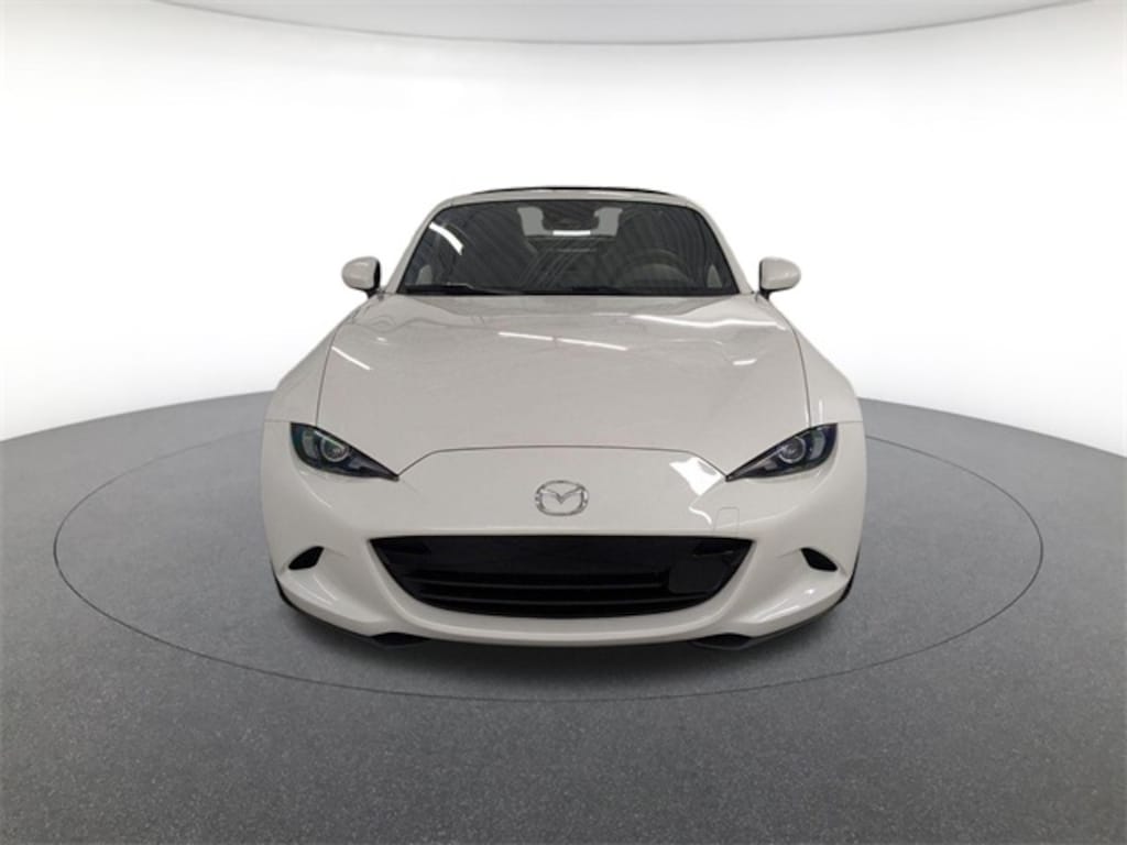 Mazda Certified Pre-Owned Certified, 4-Wheel Disc Brakes, 9 Speakers, ABS brakes, Air Conditioning, All Weather Floor Mats, Alloy wheels, AM/FM radio: SiriusXM, AppLink/Apple CarPlay and Android Auto, Auto High-beam Headlights, Auto-dimming door mirrors, Auto-dimming Rear-View mirror, Automatic temperature control, Brake assist, Bumpers: body-color, Cargo Net, Convertible HardTop, Convertible roof lining, Convertible roof wind blocker, Delay-off headlights, Driver vanity mirror, Dual front impact airbags, Dual front side impact airbags, Electronic Stability Control, Emergency communication system: MAZDA CONNECT, Exterior Parking Camera Rear, First Aid Kit, Four wheel independent suspension, Front anti-roll bar, Front Bucket Seats, Front Center Armrest, Fully automatic headlights, Garage door transmitter: HomeLink, Glass rear window, Heated door mirrors, Heated Front Bucket Seats, Heated front seats, Illuminated entry, Leather Shift Knob, Leather Upholstery, Low tire pressure warning, MAZDA CONNECT Infotainment System, Navigation System, Occupant sensing airbag, Outside temperature display, Panic alarm, Passenger vanity mirror, Power convertible roof, Power door mirrors, Power steering, Power windows, Radio data system, Radio: Bose Audio System w/AudioPilot, Rain sensing wipers, Rear anti-roll bar, Rear window defroster, Remote keyless entry, Snowflake White Pearl Paint Charge, Speed control, Speed-sensing steering, Sport steering wheel, Steering wheel mounted audio controls, Tachometer, Telescoping steering wheel, Tilt steering wheel, Traction control, Trip computer, Variably intermittent wipers, Wheel Locks, and Wheels: 17" Metallic Black Alloy.