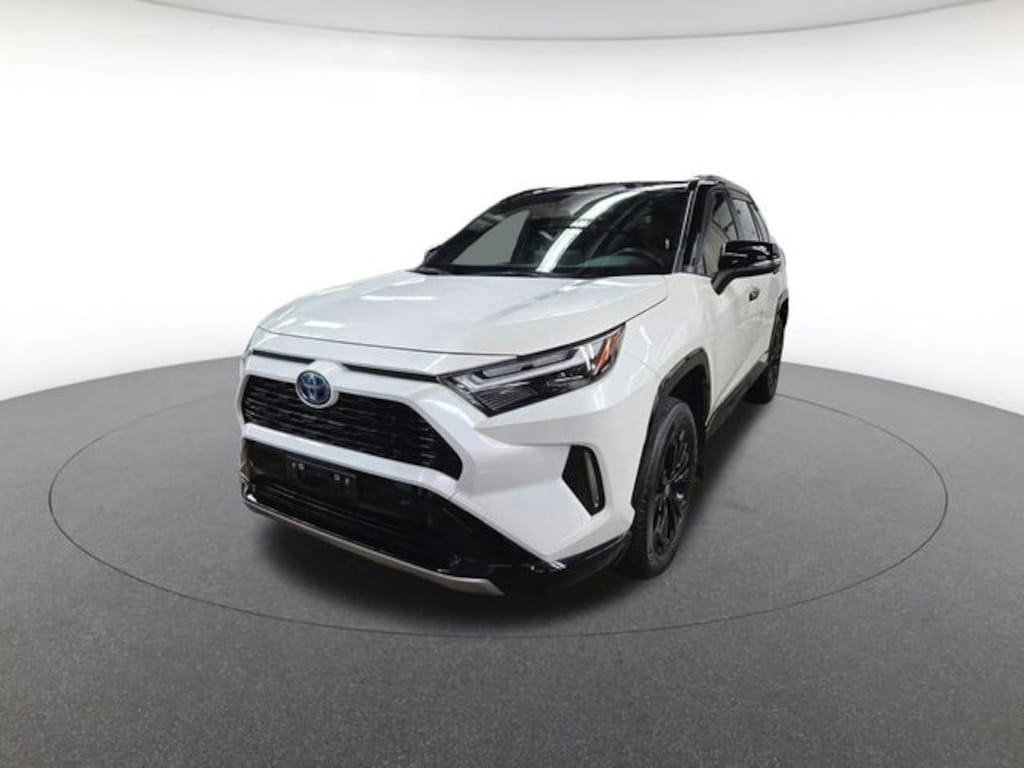 All Weather Liner Package (TMS) (All Weather Floor Liners), Carpet Mat Package (TMS) (Carpet Cargo Mat and Carpet Floor Mats), XSE Grade Weather Package (Heated 3-Spoke Leather Steering Wheel, Rain Sensing Front Wipers, and Wiper Deicer), RAV4 Hybrid XSE, 4D Sport Utility, 2.5L 4-Cylinder, eCVT, AWD, Blizzard Pearl, Black Artificial Leather, 4-Wheel Disc Brakes, 6 Speakers, ABS brakes, Air Conditioning, Alloy wheels, AM/FM radio: SiriusXM, Anti-Theft System, Apple CarPlay/Android Auto, Auto High-beam Headlights, Auto-dimming Rear-View mirror, Automatic temperature control, Axle Ratio: TBD, Brake assist, Bumpers: body-color, Delay-off headlights, Door Edge Guard (TMS), Driver door bin, Driver vanity mirror, Dual front impact airbags, Dual front side impact airbags, Electronic Stability Control, Emergency communication system: Safety Connect with 1-year trial, Four wheel independent suspension, Front anti-roll bar, Front Bucket Seats, Front Center Armrest, Front dual zone A/C, Front fog lights, Front reading lights, Fully automatic headlights, Garage door transmitter: HomeLink, Heated door mirrors, Heated Front Seats, Heated front seats, Illuminated entry, Knee airbag, Lane Departure Warning System, Leather Shift Knob, Low tire pressure warning, Mudguard (TMS), Occupant sensing airbag, Outside temperature display, Overhead airbag, Overhead console, Panic alarm, Passenger door bin, Passenger vanity mirror, Power door mirrors, Power driver seat, Power Liftgate, Power moonroof, Power steering, Power Windows, Radio data system, Radio: Audio Plus, Rear anti-roll bar, Rear seat center armrest, Rear window defroster, Rear window wiper, Remote keyless entry, Roof Rack Cross Bars (TMS), Roof rack: rails only, Security system, SofTex Seat Trim (EC), Speed control, Speed-sensing steering, Split folding rear seat, Spoiler, Steering wheel mounted audio controls, Telescoping steering wheel, Tilt steering wheel, Traction control, Trip computer, Turn signal indicator mirrors, Variably intermittent wipers, and Wheels: 18" x 7.0J Black-Painted Aluminum Alloy.